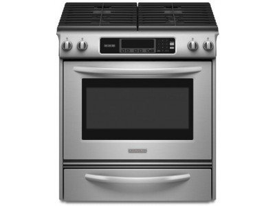 DimensionsHeight: 35 5/8 in.Width: 30 in.Depth: 27 1/4 in.Depth Including Handles: 27 1/4 in.Cooktop FeaturesAccuSimmer Burner: NoBurner Type: Sealed GasCooktop Style: PorcelainCooktop Surface: Porcelain-on-SteelGrate Finish: PORCELAIN-COATED CAST IRONKeep Warm 5th Element: NoSimmer Burner: NoDual Element Burner: NoPower Burner: YesOven FeaturesBread Proofing and Dehydration Functions: YesCleanBake Hidden Element: NoCleaning Type: Self-CleaningClosed-Door Convection Broiling: NoDelay Bake: YesNumber of Racks: 2Oven Hold Warm: NoOven Light: YesOven window: YesSabbath Mode Functions: YesTemperature Probe: NoWindow Size: Extra LargeAutomatic Door Latch: YesCleaning System: Variable Time Self-CleaningConvection Bake/Broil/Roast: NoOven Light: 2FeaturesBroil and Serve Drawer: NoBroiler Type: Waist HighControl Lock Out Function: YesDoor Style: GlassFlush with Cabinet Design: NoFuel Type: GasInstallation Design: Slide-InPilotless Electronic Ignition: YesStorage Drawer: YesTime of Day Clock: YesWarming Drawer: NoSelf-Cleaning: YesPerformanceBurner Configuration: 2 - 6,000 BTU 1 - 12,500 BTU 1 - 14,000 BTUTemperature Management System: StandardBake Burner Rating: 16,500 BTUBake Element Rating: Not ApplicableBroil Burner Rating: 10,000 BTUBroiler Element Rating: Not ApplicableCenter Front Burner Rating: Not ApplicableCenter Rear Burner Rating: Not ApplicableInner/Outer Broil Element: Not ApplicableLeft Front Burner Rating: 14,000 BTU Ultra PowerLeft Rear Burner Rating: 6,000 BTURight Front Burner Rating: 6,000 BTURight Rear Burner Rating: 12,500 BTUControlsControl Style: Glass TouchCapacityOven Size: Super CapacityOven Capacity: 4.1 Cubic footELECTRICALRequirements: 15 Ampere, 120 Volts, 60 Hertz (1/second), A TIME-DELAY FUSE OR CIRCUIT BREAKER AND SEPARATE CIRCUIT IS RECOMMENDED..../ KitchenAid Architect Series II KGSK901SSS 30" Slide-In Gas Range with 4 Sealed Burners, 14,000 BTU UltraPower Sealed Burner, 4.1 cu. ft. Self-Cleaning Thermal Oven and Storage Drawer: Stainless Steel / Pro Ovens